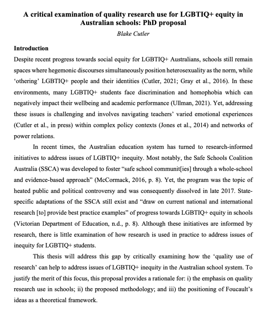 He is a PhD Candidate associated the School of Education, Culture and Society, within the Faculty of Education at Monash University. Blake has been awarded an Australian Government Research Training Program (RTP) Stipend and a Monash Graduate Excellence Scholarship to undertake his PhD.